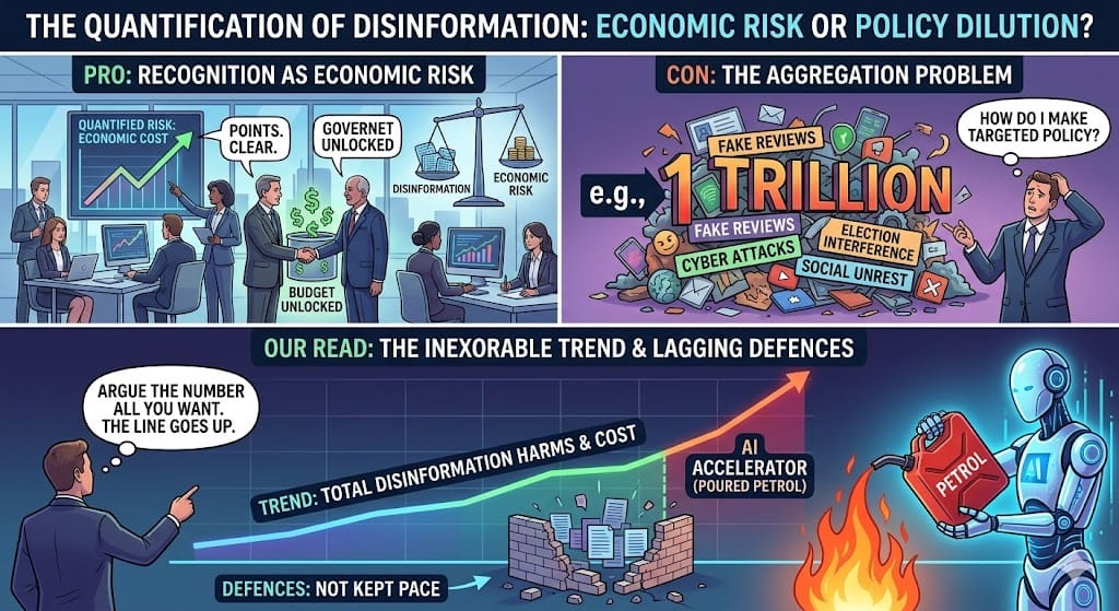 Pro: Quantifying disinformation forces governments and businesses to treat it as economic risk, not just a culture war — and that unlocks budgets.