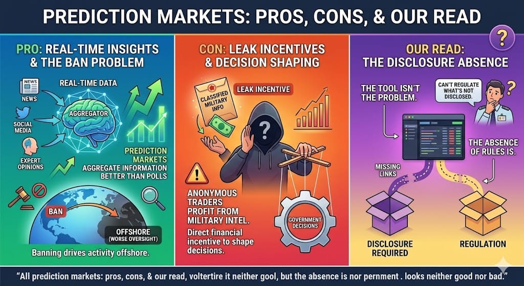 Pro: Prediction markets aggregate real-time information better than polls or pundits, and banning them drives activity offshore, where oversight is worse.